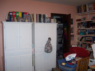 Well, I went for the good old shopping tote and monogrammed dishtowel, but I think they came out beautiful. I can't wait to make something for Camille and myself with this look! We were to include a handmade item, a thrifted item, a new item, and some crafty goods that met the swap color requirements of blue, black, and white. I'm not a good thrifter around my hometown, so I put in some cuts of scrapbook paper and ribbons for my thrifting. I sent a pretty "French" box and candies, however, I only photographed what I made, as I was feverishly trying to pack it all up for my husband to post after I left town. Maybe Paula will get a shot of the goodies I sent.